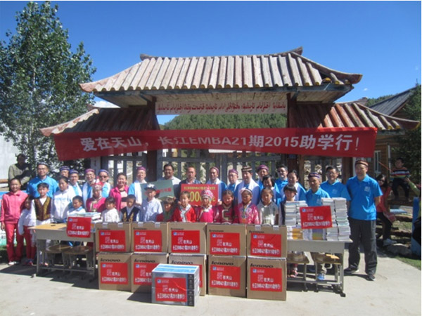 2015年8月協(xié)長江商學(xué)院21期班向阿勒泰哈納斯鄉(xiāng)中學(xué)捐助5萬元學(xué)習(xí)物資;