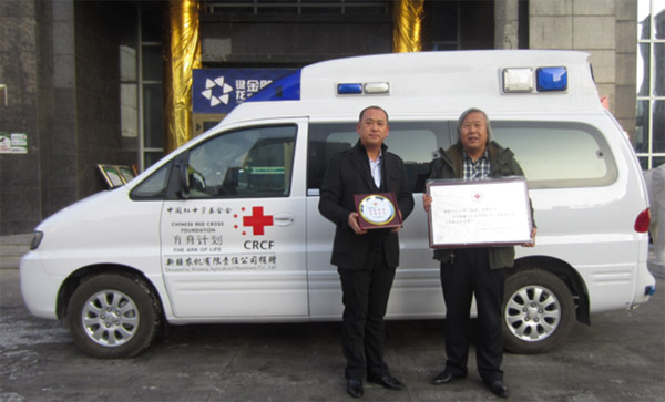 2014年11月向巴里坤紅十字會(huì)捐贈(zèng)價(jià)值30萬的救護(hù)車一輛;