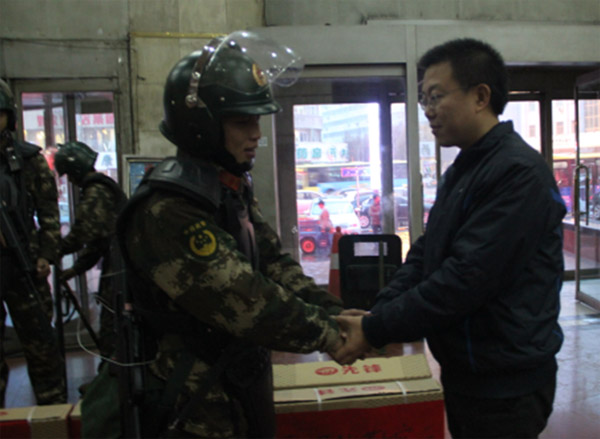 2015年11月向武警8664部隊(duì)慰問執(zhí)勤官兵捐贈(zèng)價(jià)值2000元的快熱爐五臺(tái);