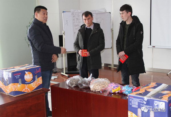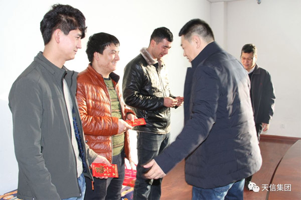 周書記還看望了去年集團(tuán)安置的五位南疆巴郎,并一一送去“大紅包”。聽說(shuō)他們都在技術(shù)崗、銷售崗取得不錯(cuò)的成績(jī),有的還成了“大單”,周書記鼓勵(lì)他們以天信為家,扎實(shí)學(xué)好工作技能闖出“新天地”!周書記還就維吾爾族員工“總部培訓(xùn)、地州工作”的人才培養(yǎng)模式與農(nóng)機(jī)杜總展開深入探討。