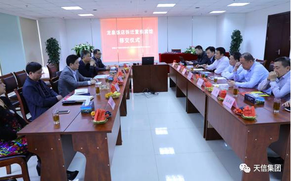 春風十里,最美四月天,新疆生產建設兵團第九師一行蒞臨新疆鍵龍房地產有限公司舉行龍泉飯店拆遷置換賓館移交儀式,雙方在歡快的氛圍中共同回顧了龍泉街的龍泉飯店經歷的五年風雨兼程,雙方正式簽字交接。